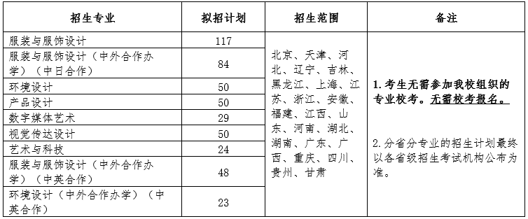 美术与设计学类面向全国拟定招生497名(其中服装与艺术设计学院招生422名,上海国际时尚创意学院招生75名)。