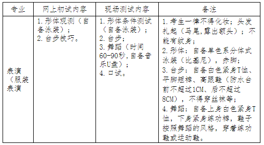 表演(服装表演)专业报名及网上初试费用120元(报名系统缴费),现场测试不需要缴费。